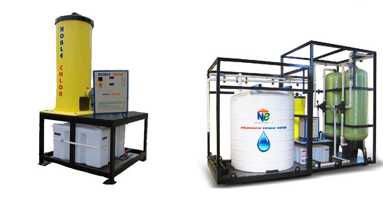 This chlorinated brine can be quantitatively added to disinfect your water and it provides safe, odourless, tasteful drinking water. Compare to traditional disinfectant methods like adding bleaching powder, commercial hypo and gas chlorine, our Noble Chlor electrochlorinator process is very effective, safe and most economical. This electrochlorinator system is compact and can easily be operated from any remote location if power & salt are available.